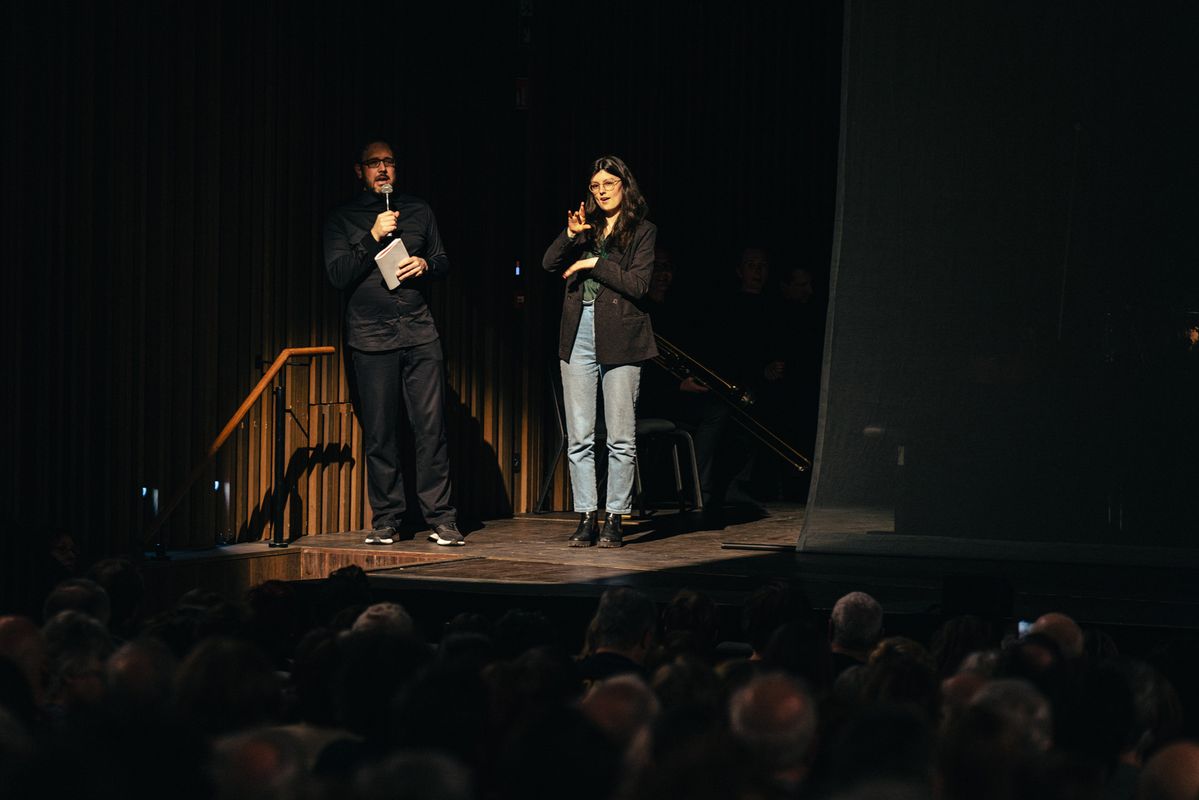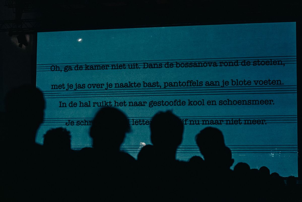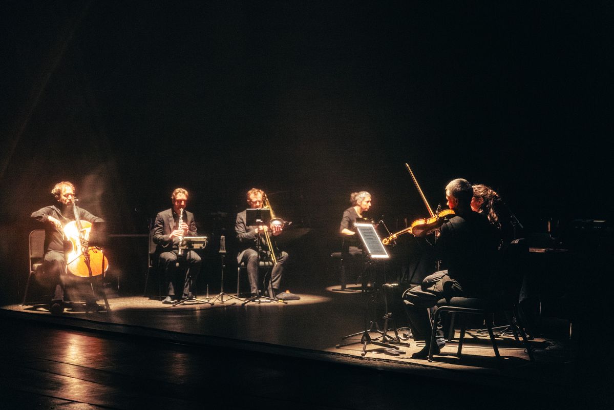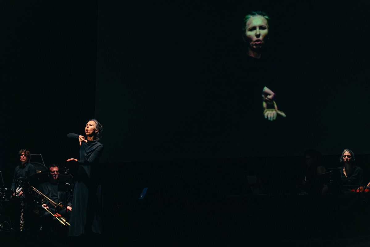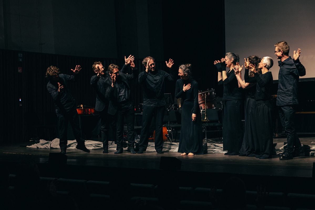 Een stem geven aan stille revoltes: dat doet 'Don't Leave the Room' van Nadar. Aan de basis lag het gelijknamige gedicht uit 1970 waarin de Russische dichter Iosif Brodski het angstvallige zwijgen van zijn volk beschimpt. Een stilte die zijn landgenoot, componist Alexander Khubeev, nu doorbreekt door het gedicht in gebarentaal te laten vertolken. De handen van de solist worden die van een dirigent die het ensemble richting geeft.