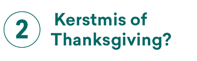 “(meteen) Thanksgiving! Het is een heel oprecht feest, zonder religie, zonder dogma’s, het gaat alleen over samenzijn en dankbaarheid. Bij ons wordt er ook best wel wat alcohol verzet (lacht), en na het eten zegt iedereen dan waar hij of zij dankbaar voor is. (Thanksgiving, oorspronkelijk een dankbetuiging voor de oogst, vindt plaats op de vierde donderdag van november, red.)”