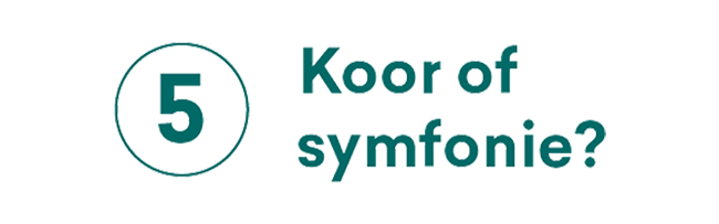 “(denkt na) Toch maar koor. Ik hou van symfonie, van het samenspel, maar niets gaat boven een groep zangers die elkaar vinden. Het is de zuiverste kunstvorm die er is. Als de stemmen perfect op elkaar ingespeeld zijn en alles goed ineenklikt: er is niets mooiers. Het is een soort high waar ik mijn hele leven naar zal blijven streven.”
