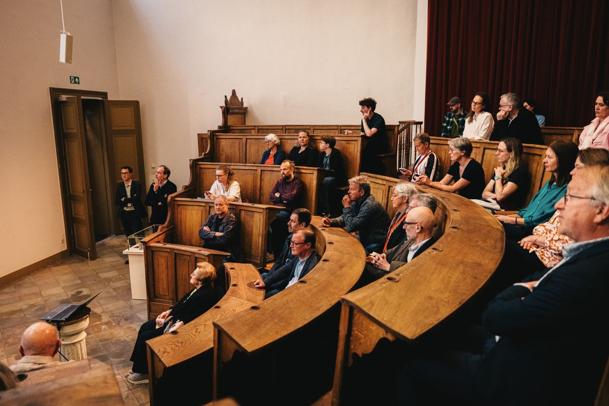 Op Erfgoeddag konden we het gerestaureerde Anatomisch theater (het oorspronkelijke universiteitsauditorium stamt uit 1878) eindelijk voorstellen. Schepenen Christophe Peeters en Astrid De Bruycker, directeur Geert Riem en architect Wouter Callebaut spraken de pers toe.