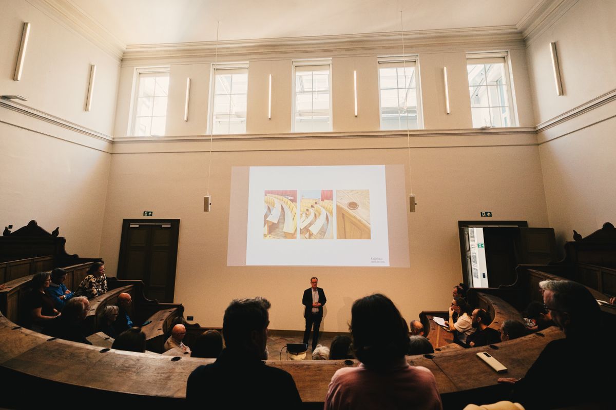 Op Erfgoeddag konden we het gerestaureerde Anatomisch theater (het oorspronkelijke universiteitsauditorium stamt uit 1878) eindelijk voorstellen. Schepenen Christophe Peeters en Astrid De Bruycker, directeur Geert Riem en architect Wouter Callebaut spraken de pers toe.