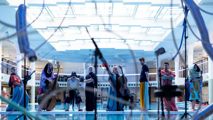 In ‘Pool of Sound’ dompelt Nemø ensemble je onder in splinternieuw werk van Elena Rykova, Pak Yan Lau en Joel Cahen. En dat ‘onderdompelen’ mag je letterlijk nemen, want het concert vindt plaats in het iconische zwembad Van Eyck.