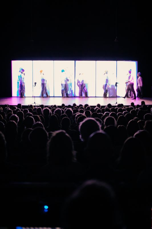 Zes afgesloten hokjes met jaloezieën vormden het decor voor de artiesten die musiceren, acteren, zingen én dansen. Elk maakte zich klaar voor zijn moment suprême, en wij gluurden mee. Of dat dachten we. In het illusionair spel van videoprojecties op de open- en dichtdraaiende lamellen is niets nog wat het lijkt. Op het toneel ontvouwde zich een hyperrealiteit die ons niet eens zo vreemd is. TikTok is er niets bij!