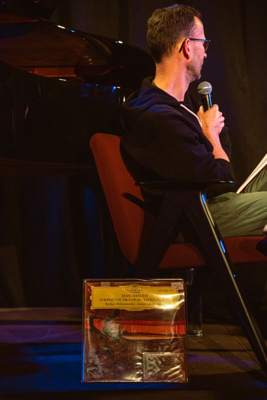 Op de eerste Soiree Elpee vertelde pianiste Marie François over Russische pianoconcerto's in de onstuimige handen van Martha Argerich, Klarastem Sander De Keere over een legendarische opname van Simeon Ten Holts 'Canto Ostinato' en artistiek coördinator Tom Jansens over een even legendarische opname van Herbert von Karajan.
